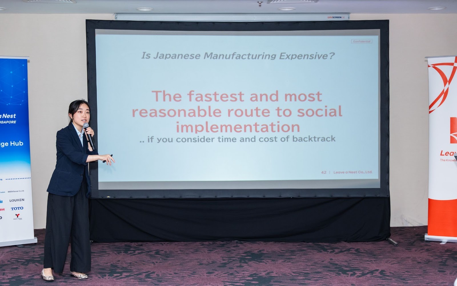 最初の1年は製造開発事業部に所属していたのですが、その際に老舗のものづくり企業さんと一緒に取り組んだ「日本式ものづくりを海外ベンチャーに伝えるプロジェクト」です。マレーシアやシンガポールなどのスタートアップに向けて、日本の製造業の考え方や姿勢を伝える講義を担当しました。製造の「せ」の字も知らない中、2時間の英語の講義を作るのは、最初は不安でしたが、「自分だからこそ伝えられることがある」と腹をくくって臨みました。